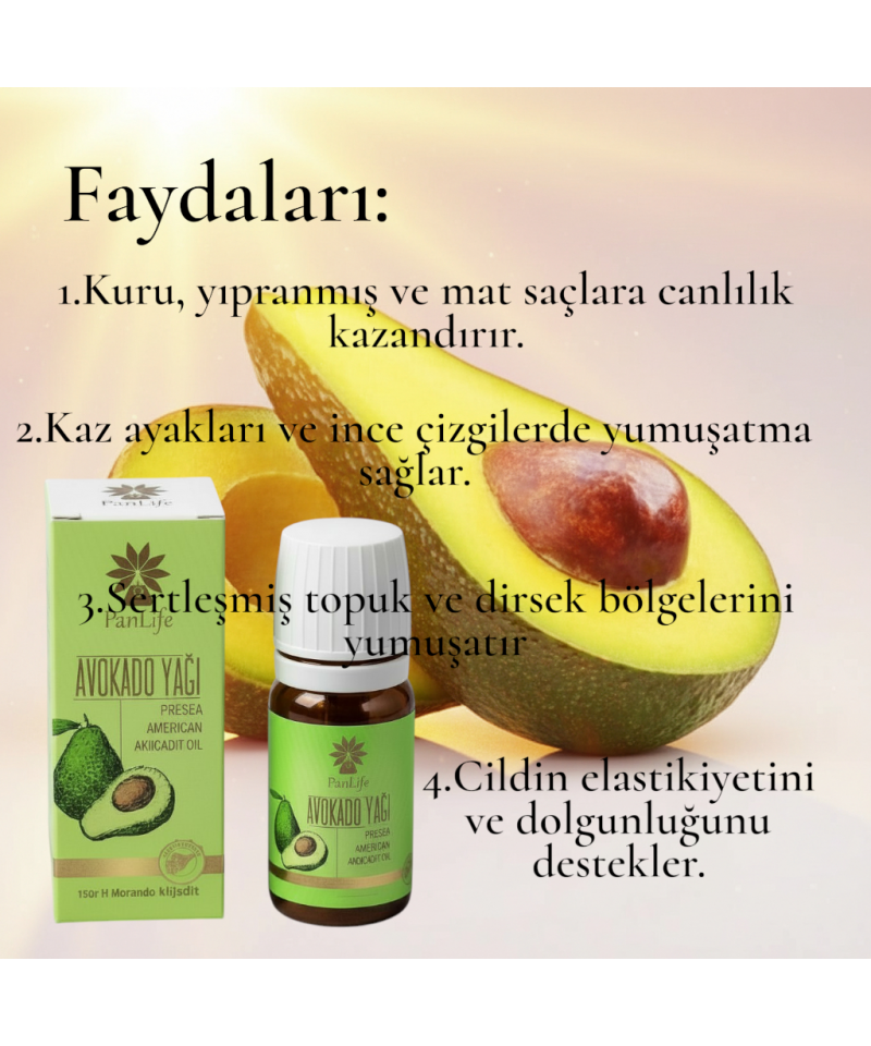 Avokado yağı, hem sağlık hem de cilt bakımı açısından oldukça faydalı bir yağdır. Soğuk pres yöntemiyle elde edilen kaliteli avokado yağı, yüksek besin değeri ve zengin içeriğiyle öne çıkar.